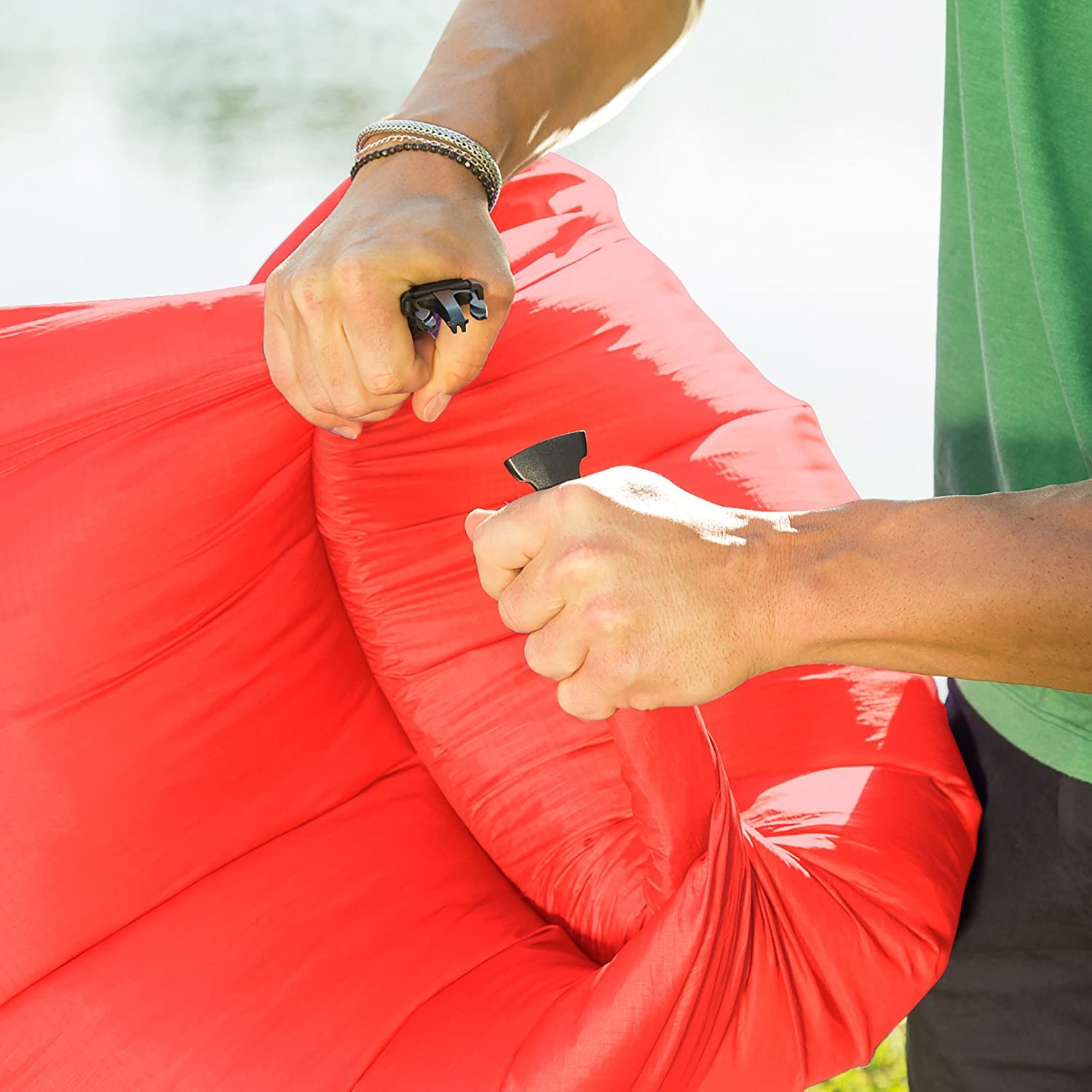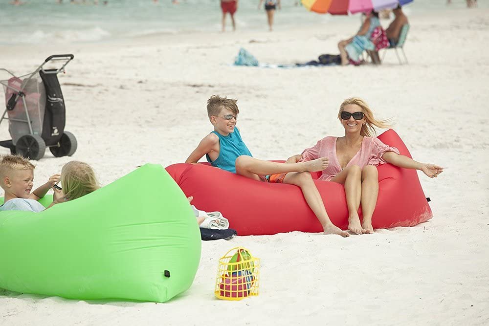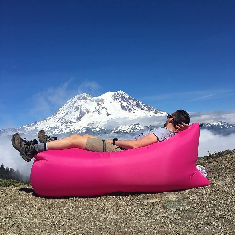 - POUCH TO COUCH IN SECONDS: Quick and easy inflation – NO PUMP REQUIRED! Lasts five hours on a single fill. Watch our video or see below for inflation instructions.