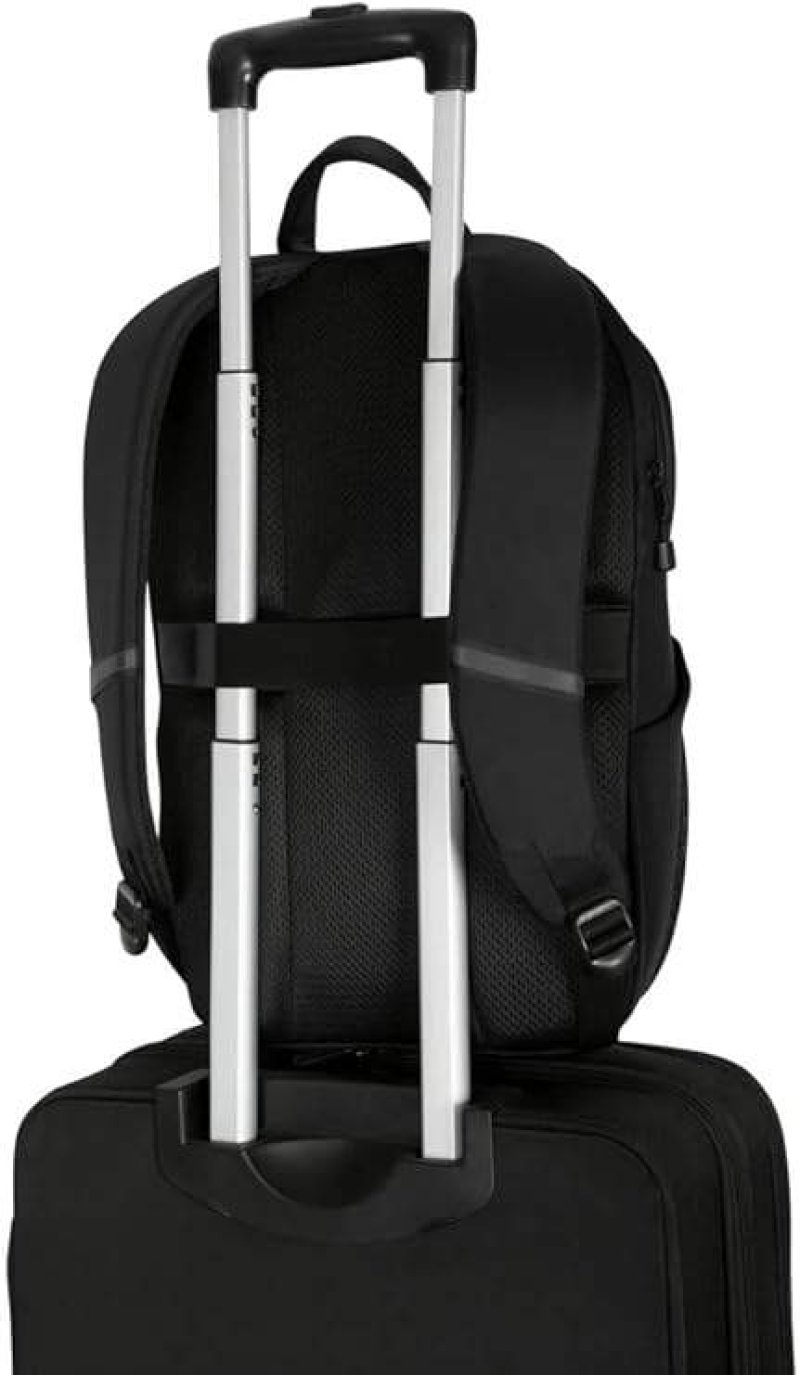 - Trolley strap secures to rolling luggage