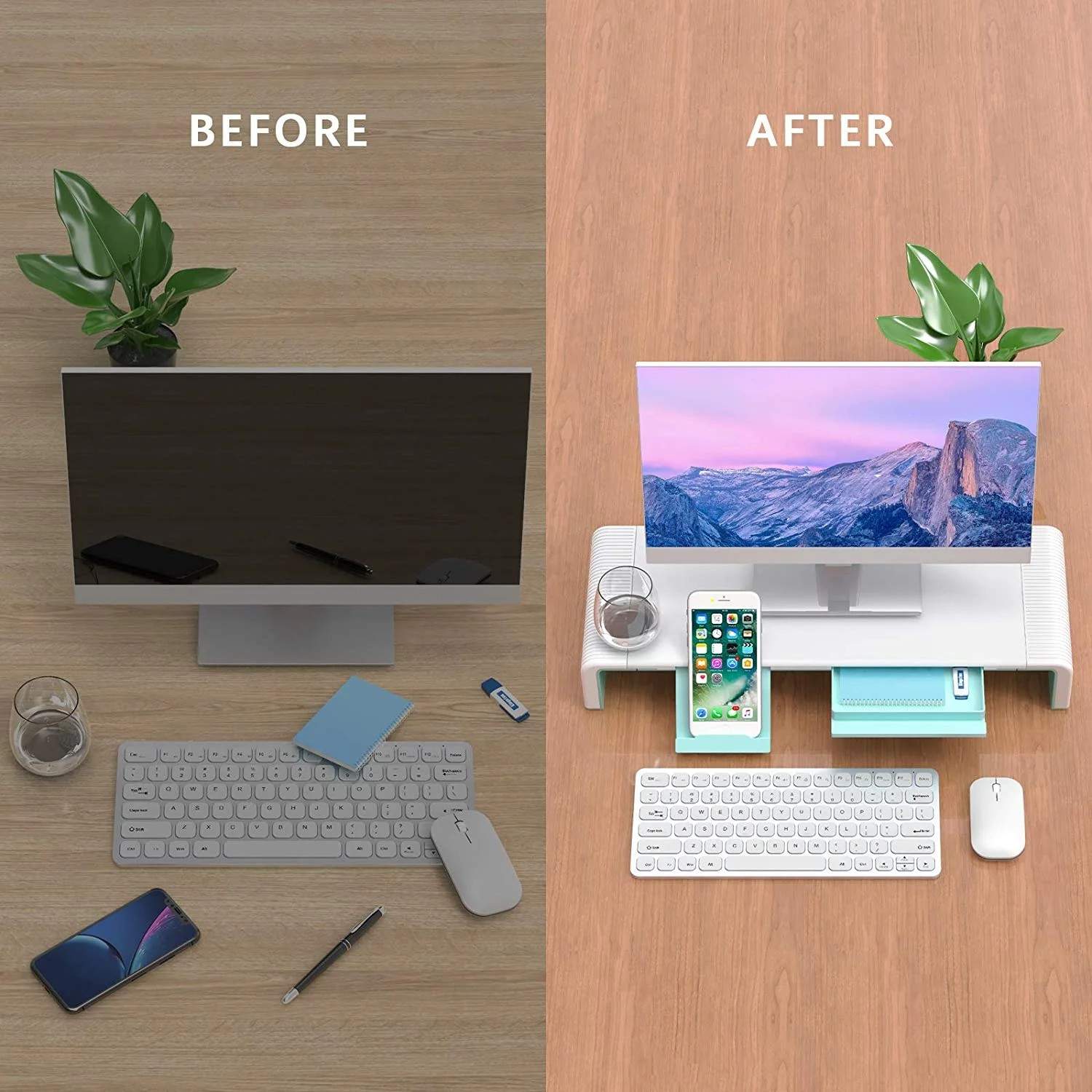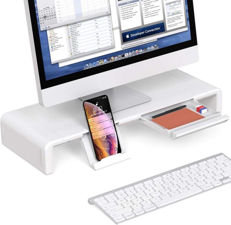 Computer Monitor Stand Adjustable Foldable With Desktop Riser Storage Drawer Tablet Phone Stand