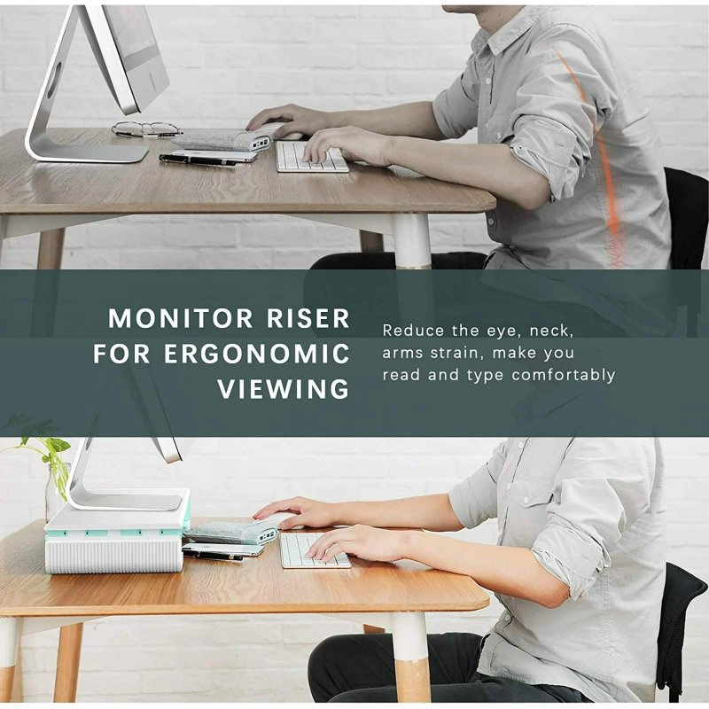Foldable Monitor Stand Riser Computer Monitor Stand with 3 Adjustable Width Compatible with Tablet Printer Laptop PC with Storage Drawer Tablet & Phone Stand Holder [White and Black]